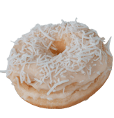 Recheio de creme com chocolate branco e coco ralado fresco. Cobertura chocolate branco e raspas de coco sêco.